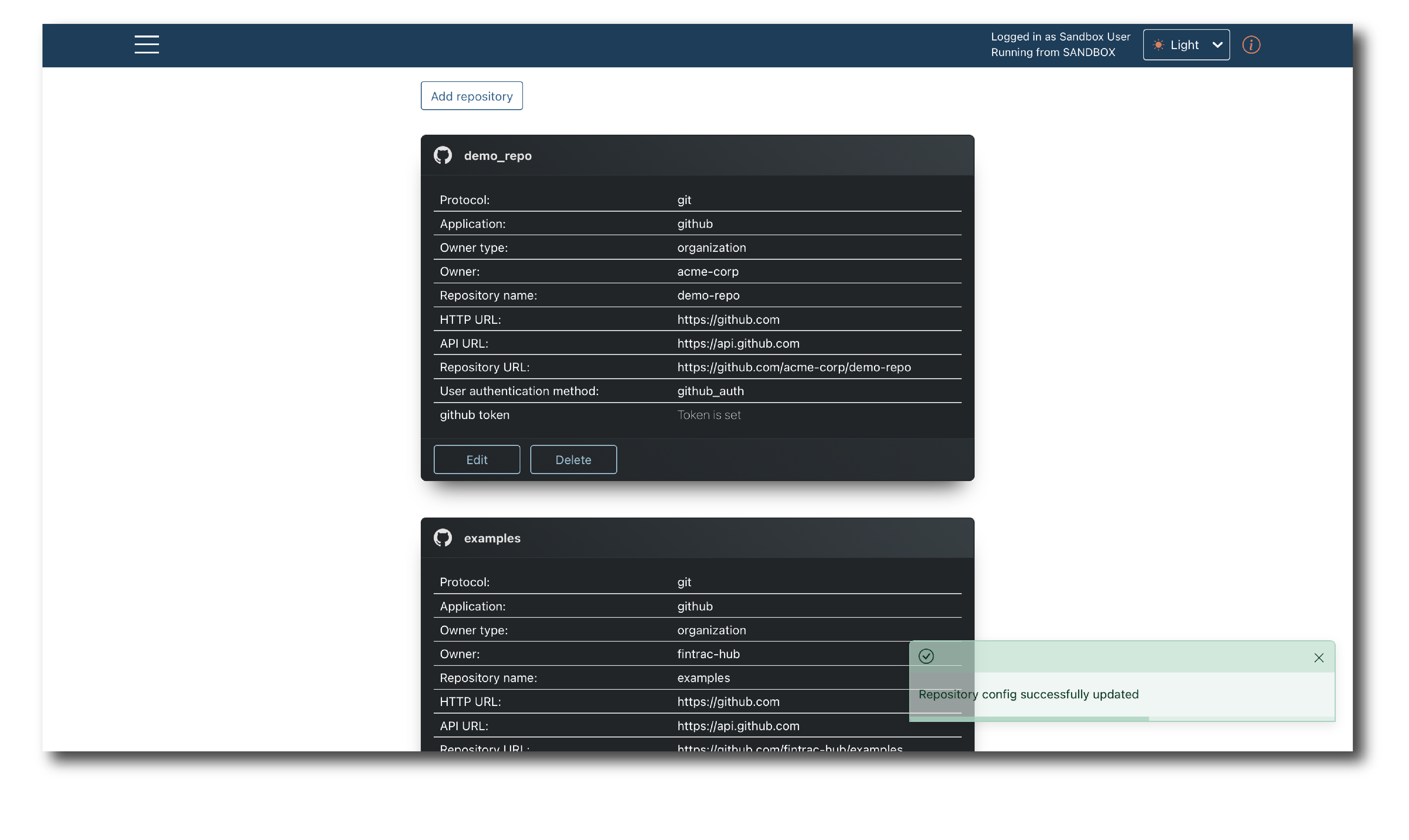 Click ‘Add repository’ and a new blank object will appear.