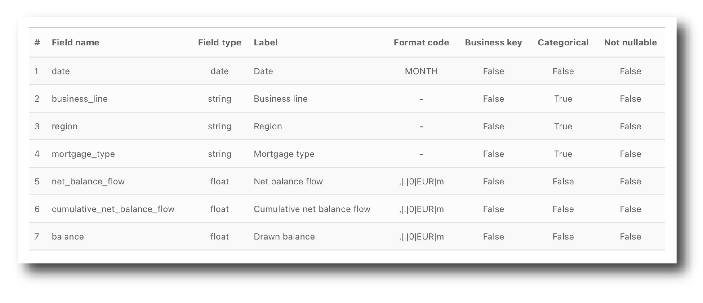 Validation considers Field name, Field Type, Business key, Categorical and Not nullable