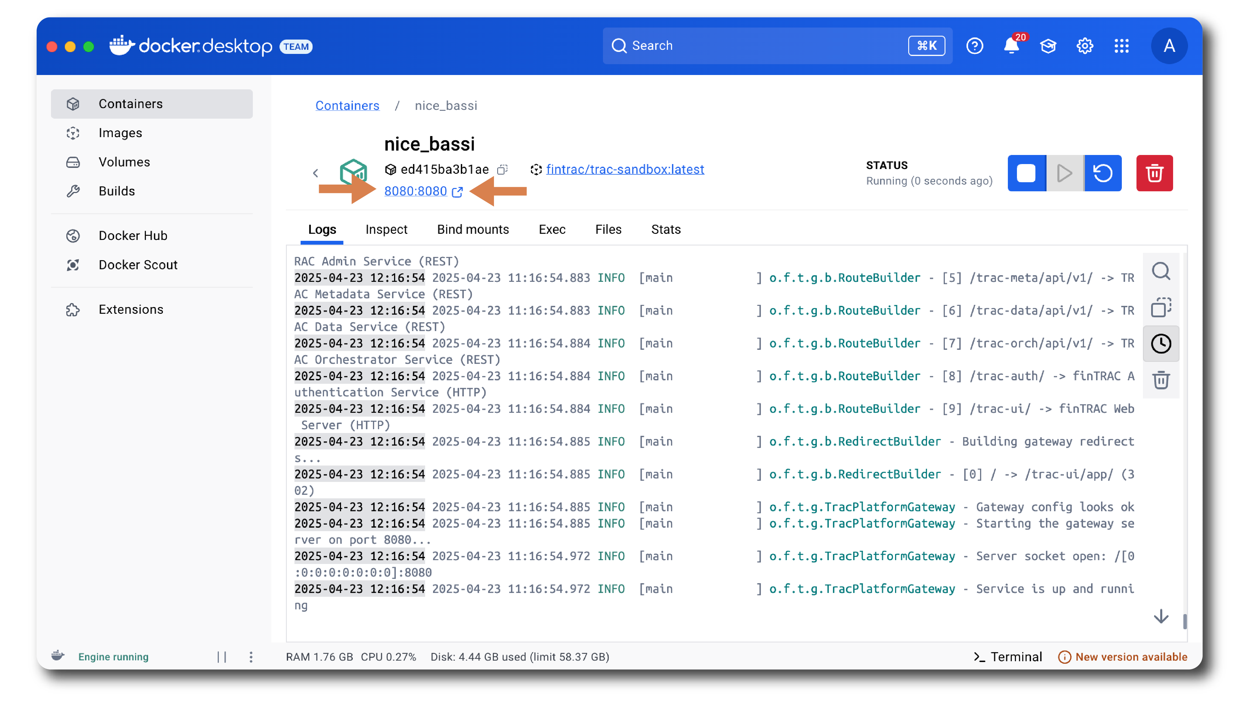 Click on the host port link to open the application.