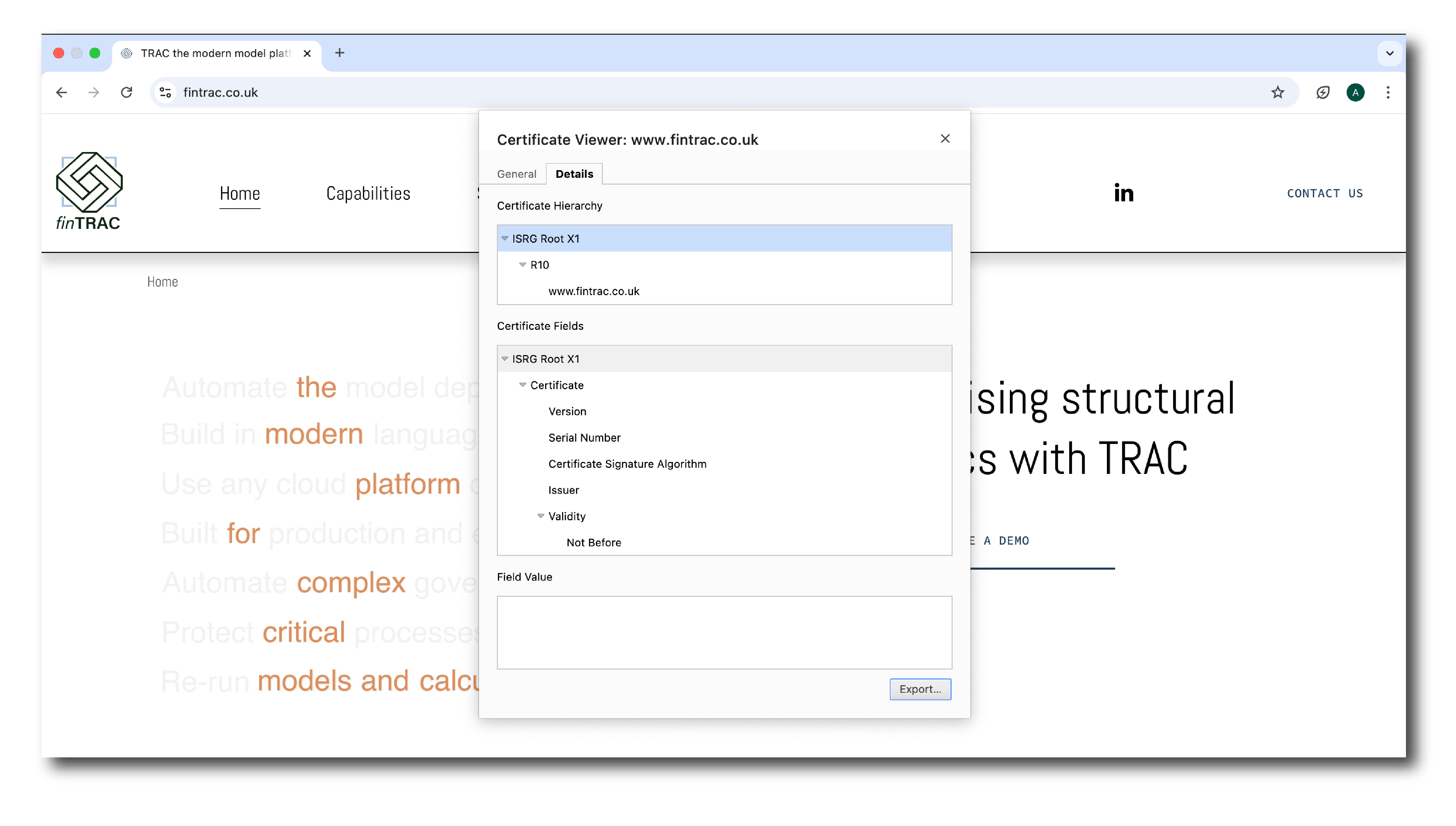 First, find your root certificate. An easy way to do this is to open a Chrome browser, connect to any external website and click the controller icon next to the website address.