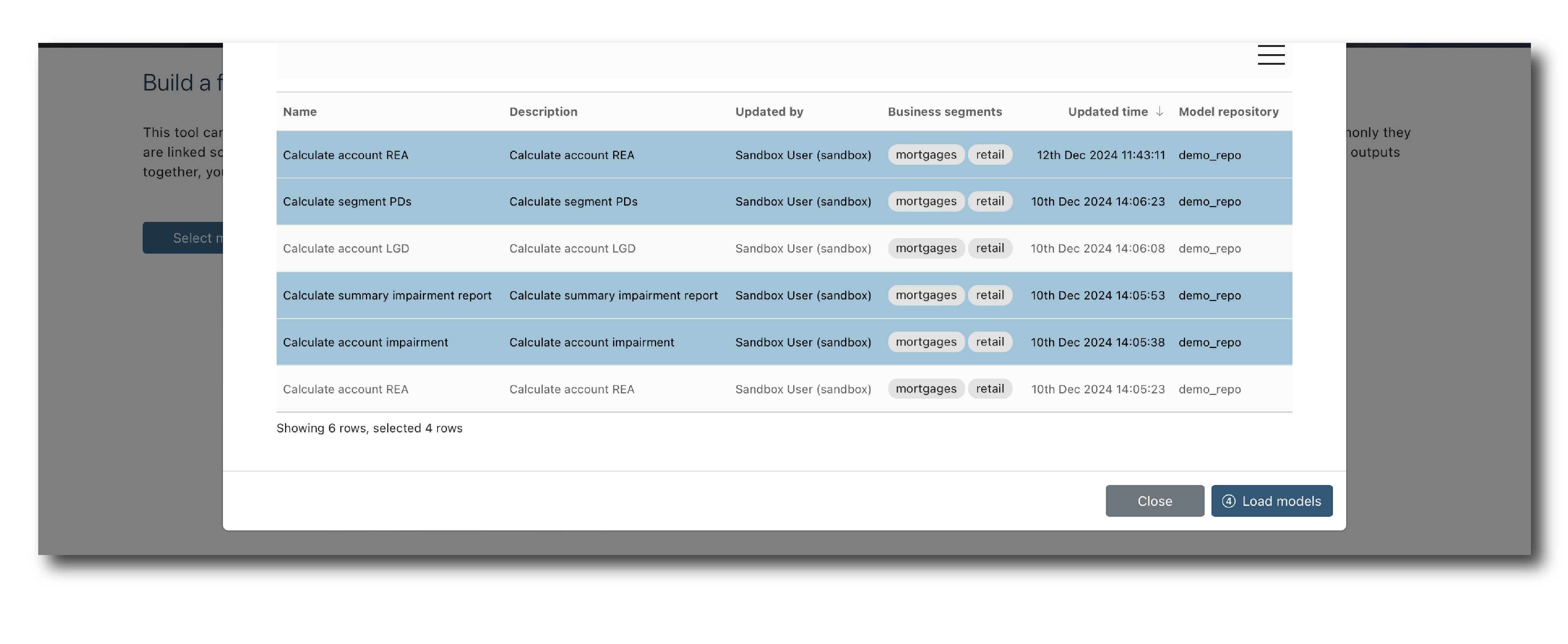 Pick the ones which you want to include in the flow and click ‘Load models’.