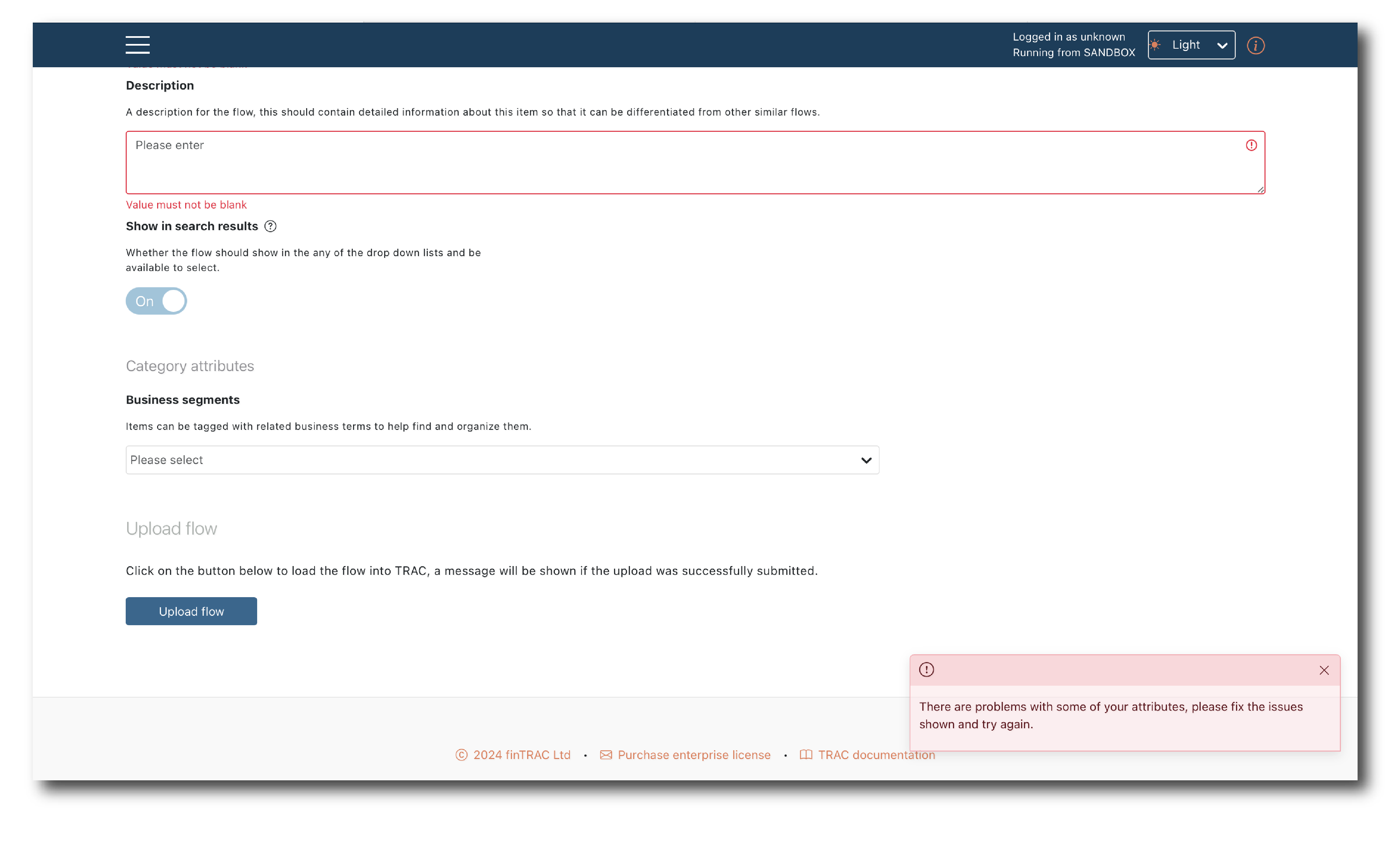 Once you are happy with the Flow, provide the general attributes and click ‘Upload’. If the upload is successful you can find the flow via (Search Page) and use it to (Run a flow).