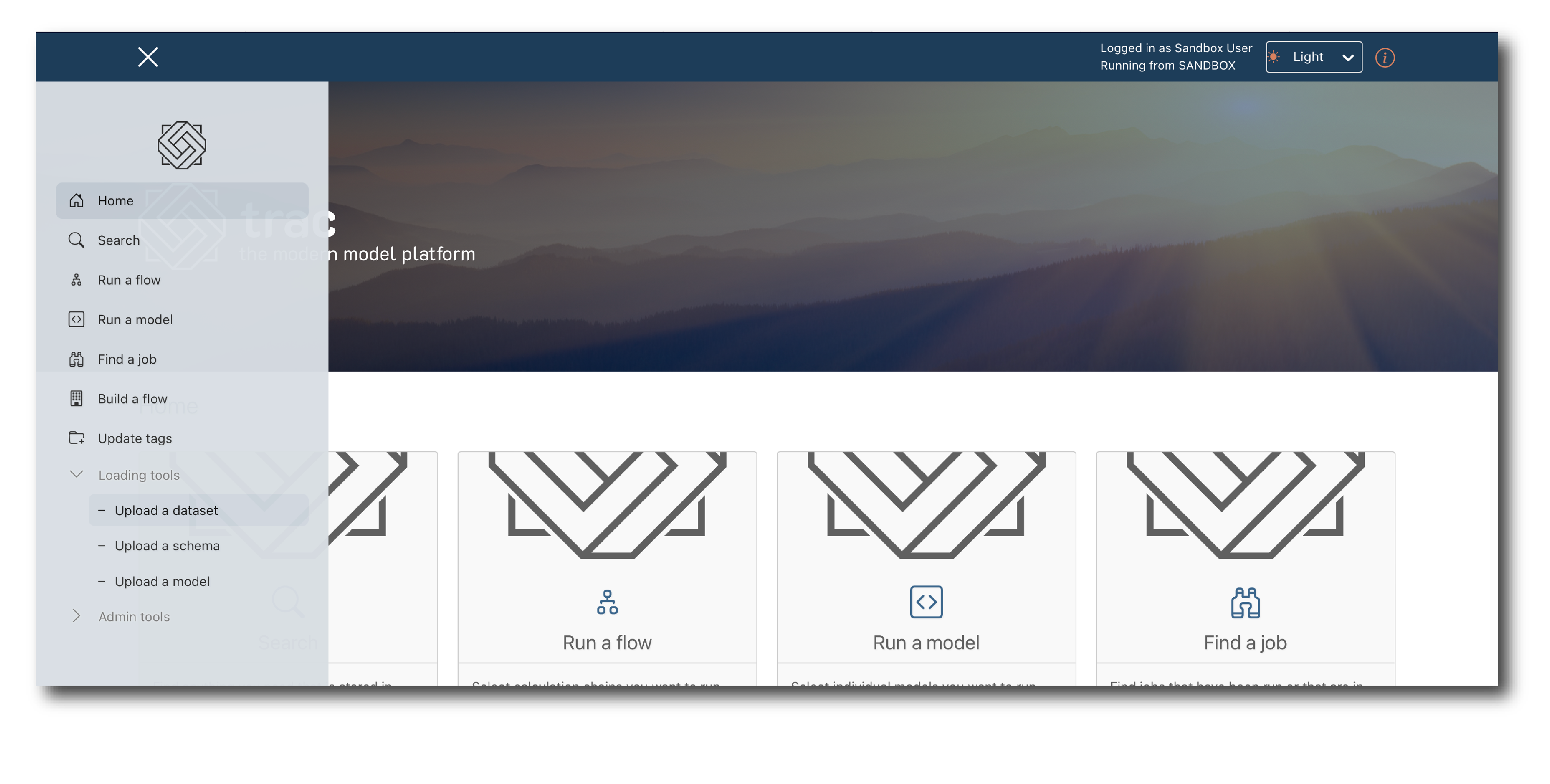 The loading tools allow you to bring models, data, and their schemas onto the platform via the UI.