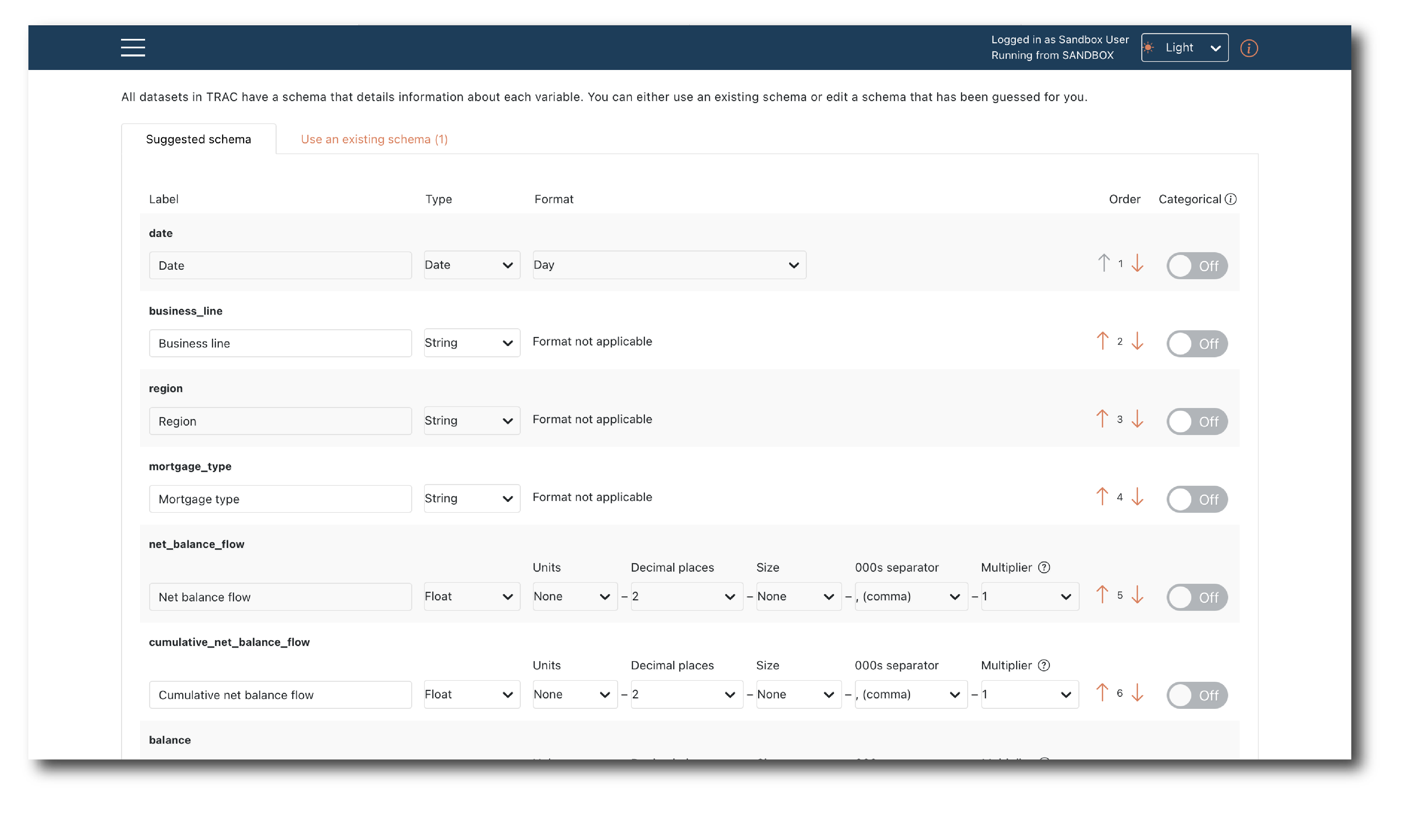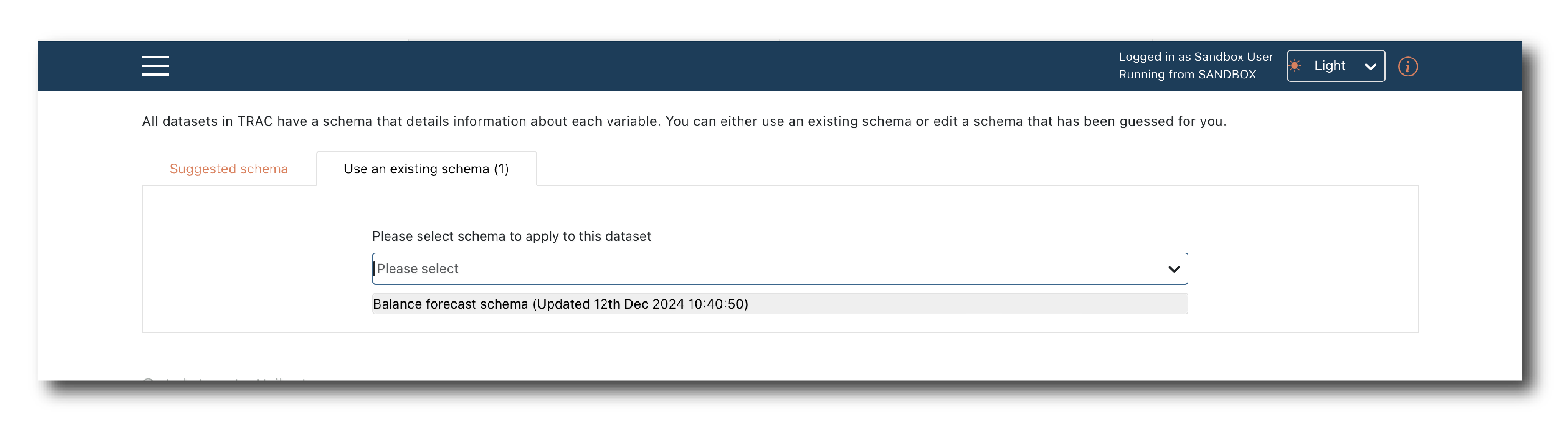And the second tab allows you to select and apply a pre-loaded Schema object. The drop-down contains the sub-set of schemas (see Load schema), that appear to match the data.