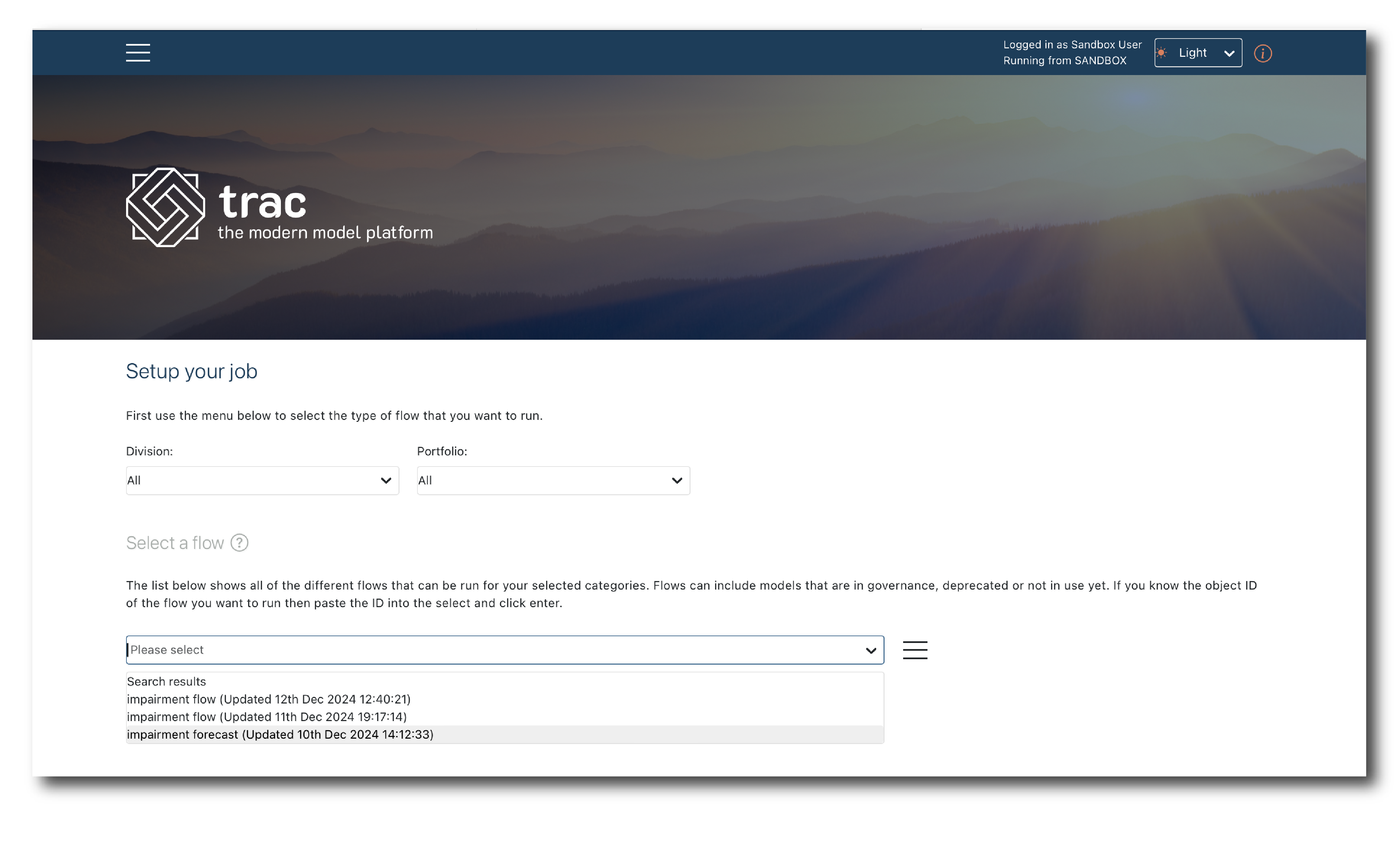 If TRAC couldn’t find a Data object which meets the Flow’s requirements you see an error message. If multiple options are found the most recent is selected, but you select an alternate via the drop-down.
