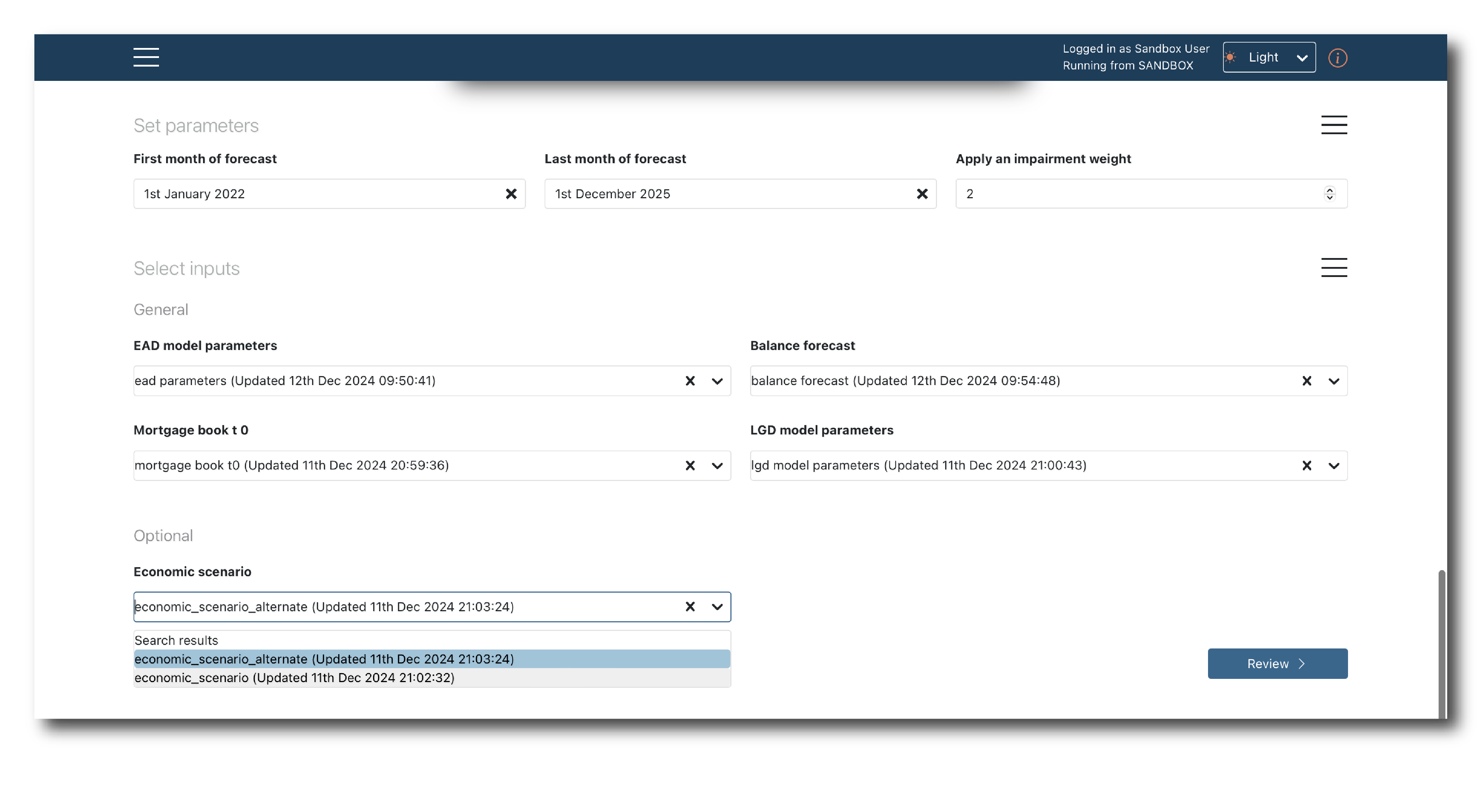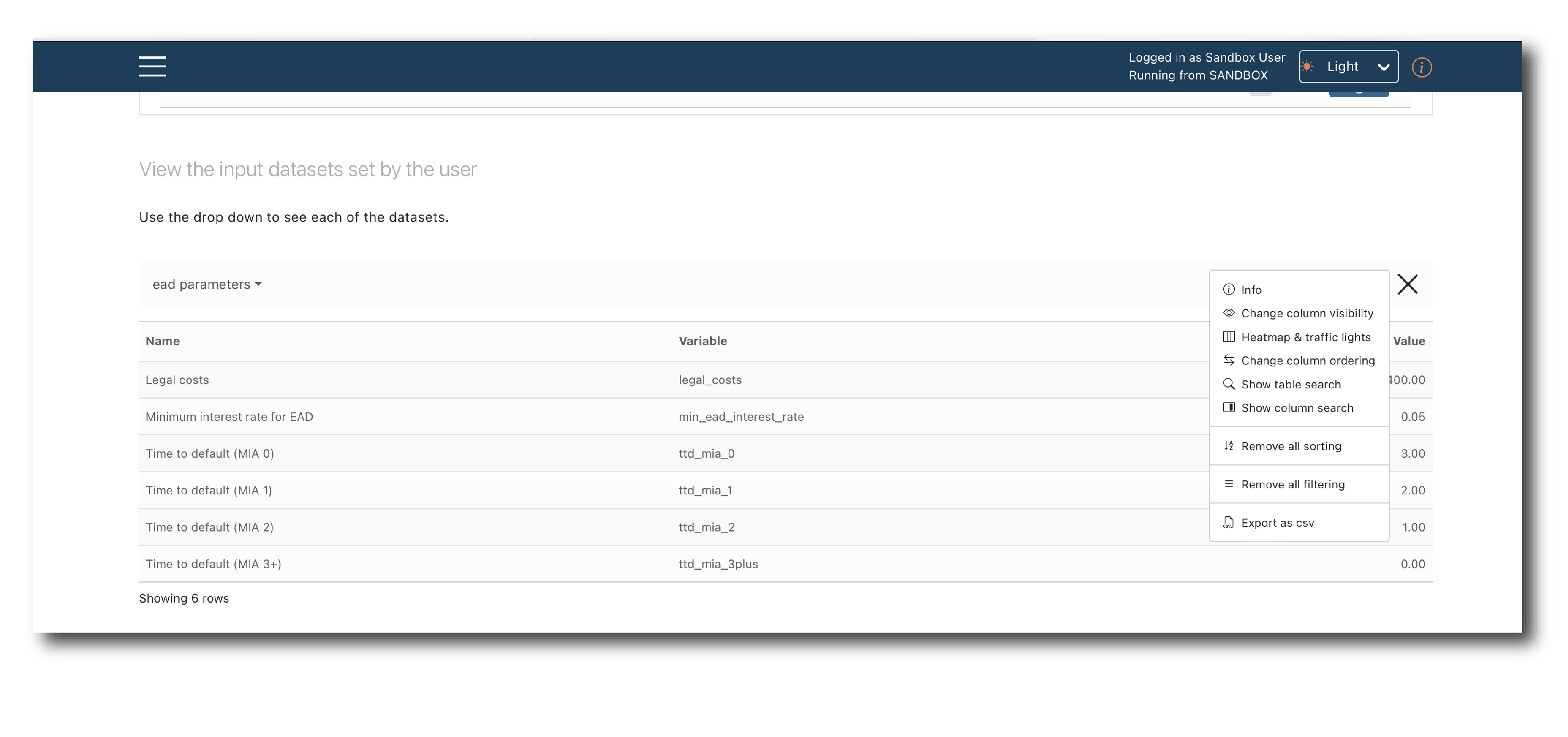 Moving down the page, the default values of any parameters are pre-populated as are the data inputs.