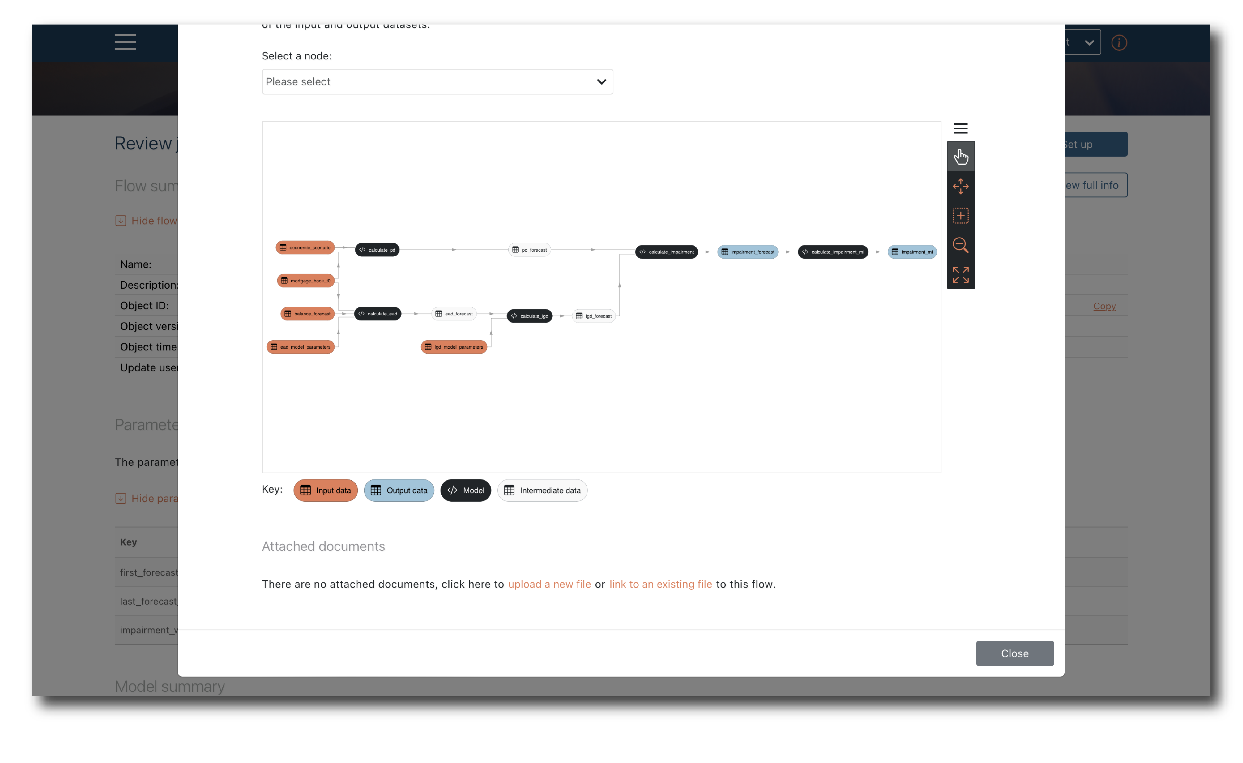 You can also access the object summaries for each Model and Data input via their ‘More info’ buttons.