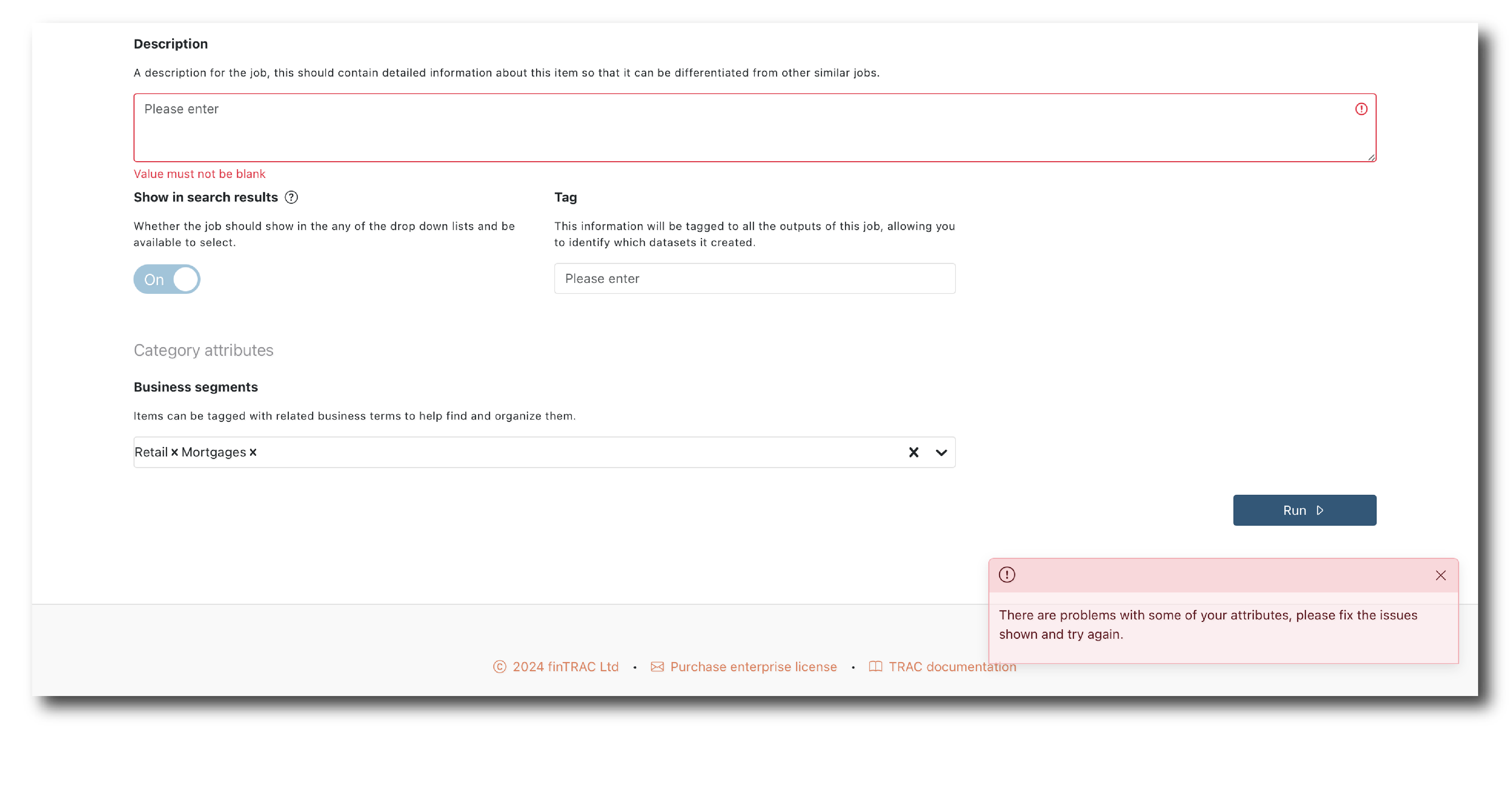 If it all looks correct, populate the general attributes and click ‘Run’. A Tag is not required but if you do populate it all the Job’s outputs will have this Tag assigned, so they are easier to find.